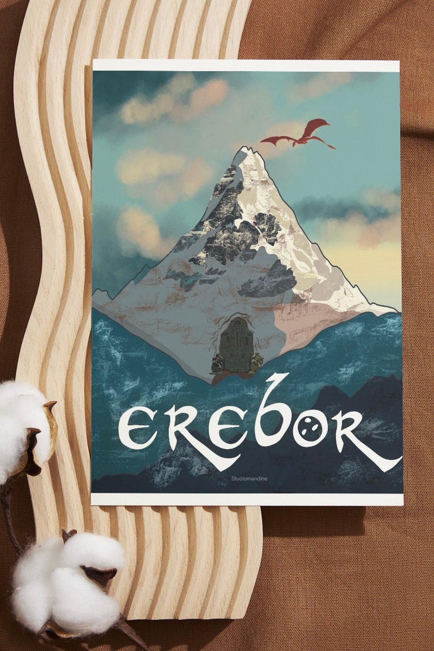 Affiche représentant le mont Erebor de l’univers de Tolkien (Le seigneur des anneaux, Le hobbit etc)