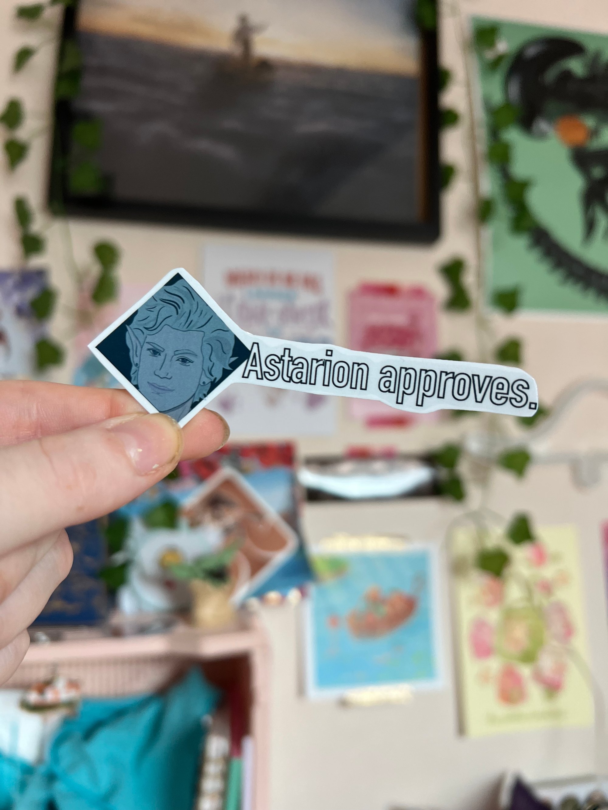 Sticker inspiré des indications du jeu Baldur’s Gate 3 « Astarion approves »
