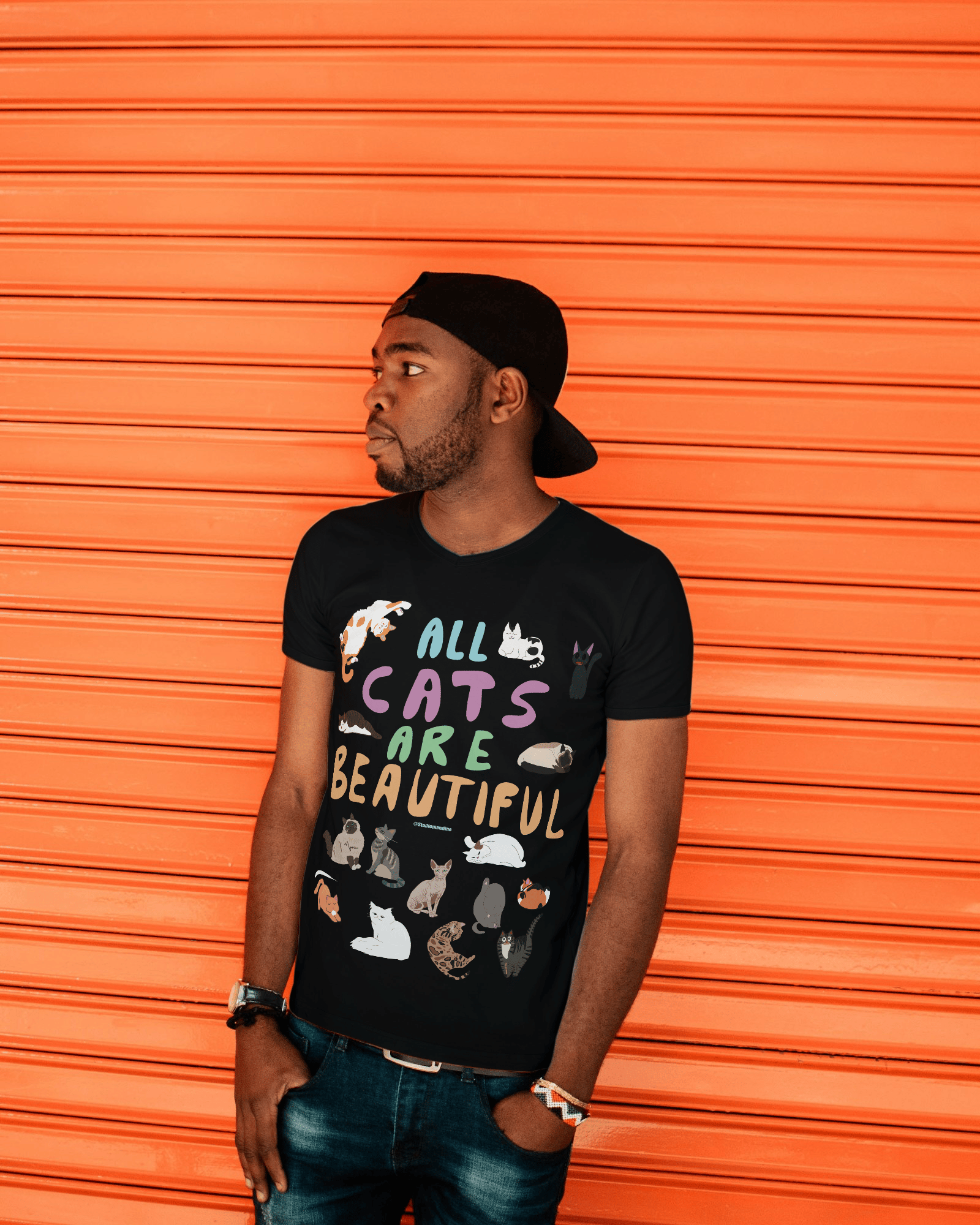 T shirt ACAB All Cats Are beautiful 100% coton noir écriture couleur sur la face du t shirt.